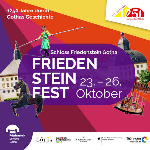 1250 Jahre Stadtgeschichte – das Friedensteinfest startet heute in Gotha weitere Informationen Datum: 23. bis 26. Oktober 2025 Ort: Schlossplatz 1, 99867 Gotha www.stiftung-friedenstein.de 👉 …